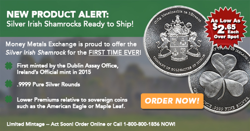 HomeBullion Specials [New Product Alert] Silver Irish Shamrocks! Money Metals Exchange 2:11 PM https://www.moneymetals.com/silver-irish-shamrock-1-troy-ounce-9999-fine/198 Bullion Specials Facebook Twitter